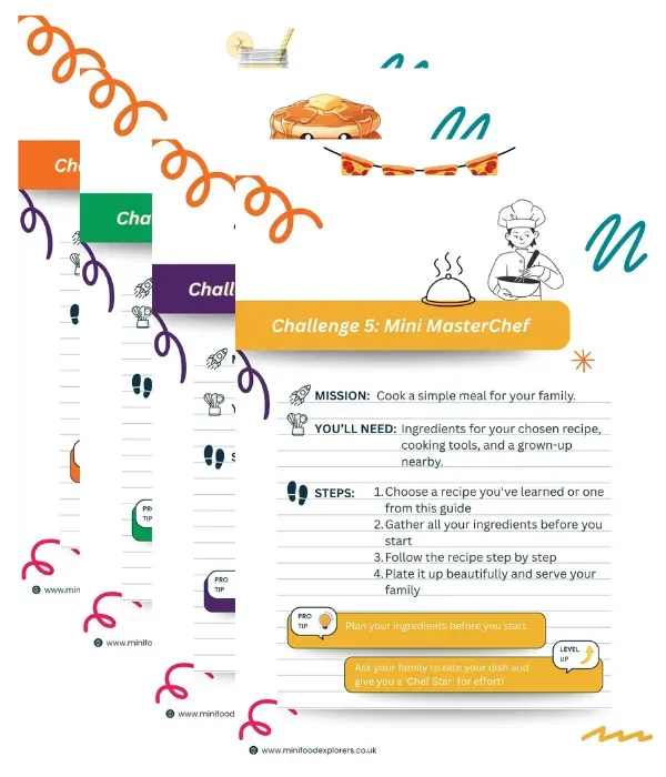 Inside, you'll find five simple, confidence-boosting challenges that help your child learn life skills, try new foods, and feel proud of what they can create. Plus, they can earn a personalised certificate for completing all five challenges!